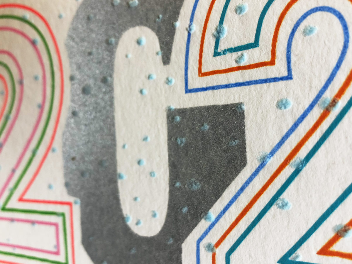 Alle bisher erschienen Neujahrskarten wurden im Handsiebdruck mit Farben gedruckt die auf Wasserbasis sind. Die einzige Ausnahme ist die Reibefarbe* 2019 für das Entzünden von Streichhölzern. Je nach Karte kam es zu 3 bis 9 Farbdrucke. Besondere Druckeffekte wurden verarbeitet.